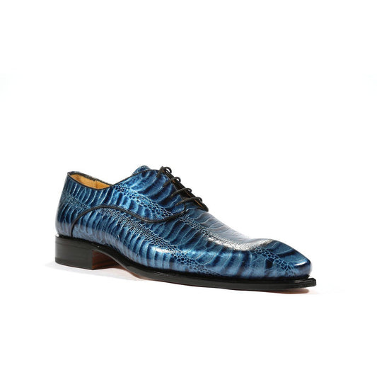 Ambrogio 39127 Men's Handmade Custom Made Shoes Blue Ostrich Leg Print / Calf-Skin Leather Derby Oxfords (AMBS1005)