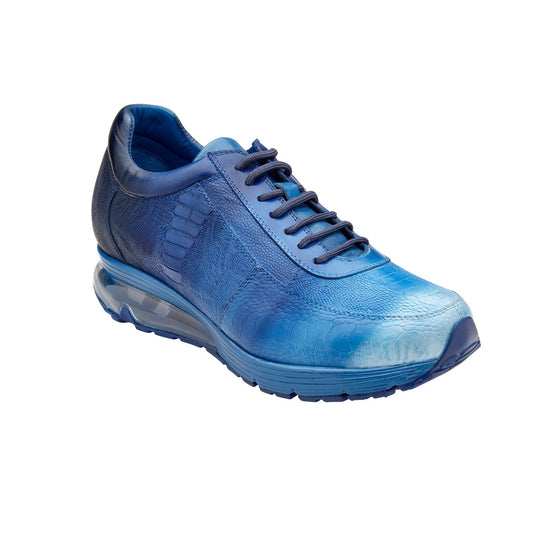 Belvedere George E16 Men's Shoes Blue Cobalt Exotic Ostrich Leg Lace-Up Casual Sneakers (BV3122)
