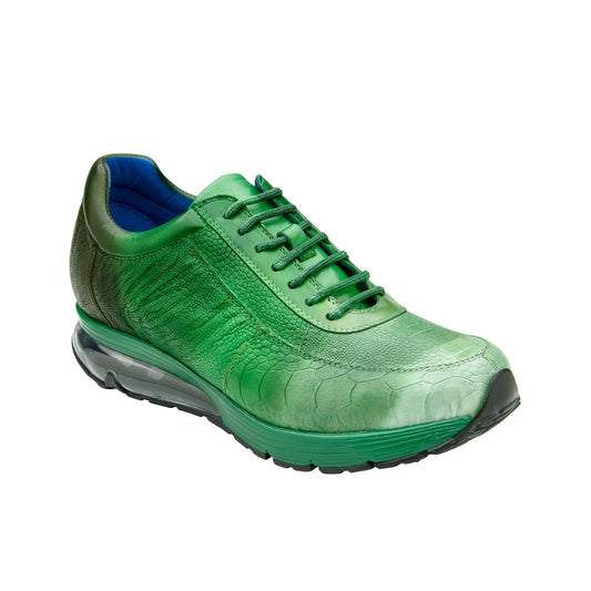Belvedere George E16 Men's Shoes Pine Green Exotic Ostrich Leg Lace-Up Casual Sneakers (BV3123)